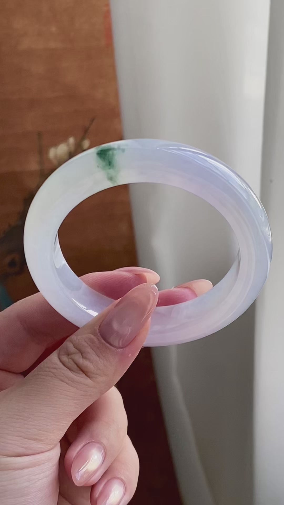 冰种淡春彩飘花平安镯(54圈)(yc228988)