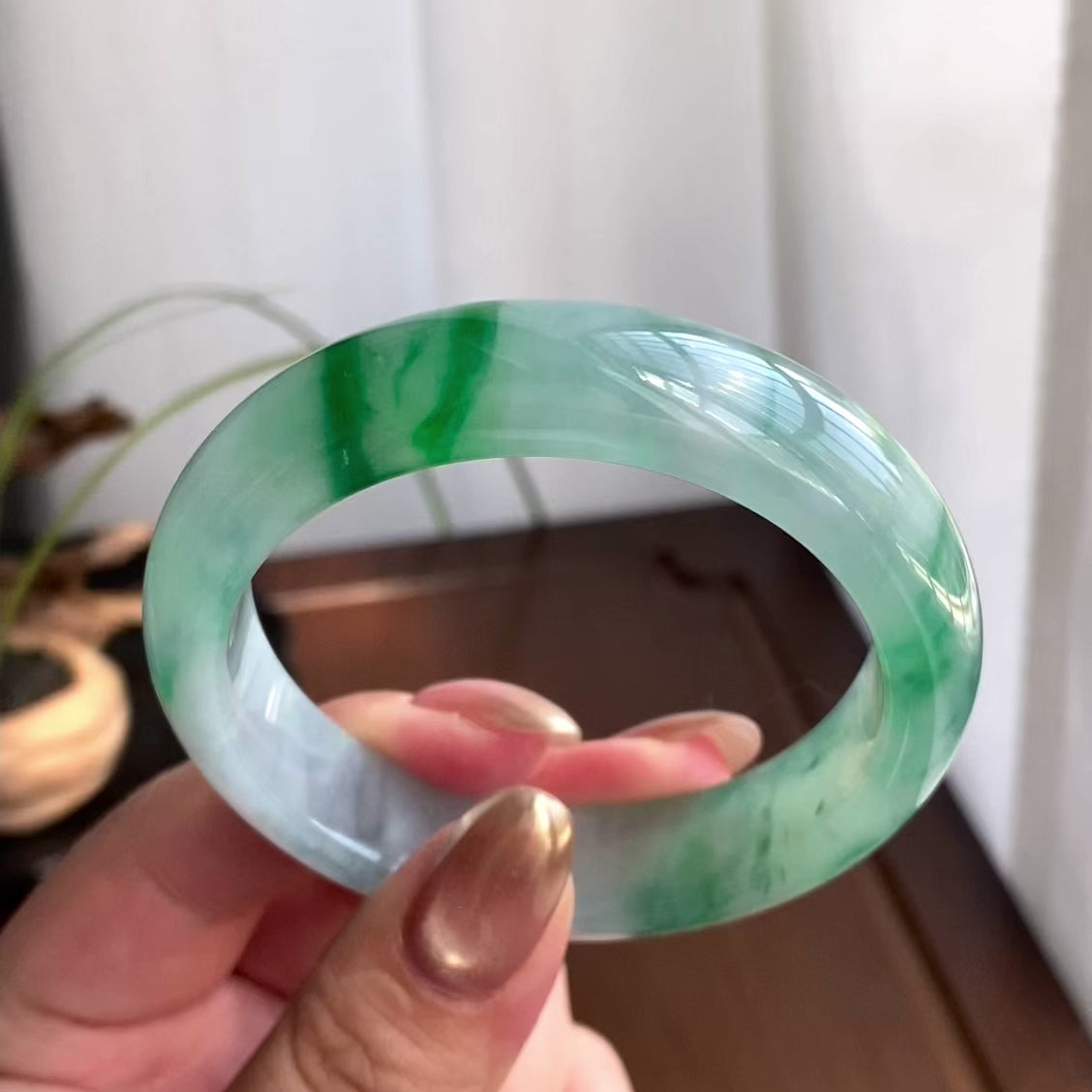 冰种辣绿色花平安镯(52圈)(yc259111)