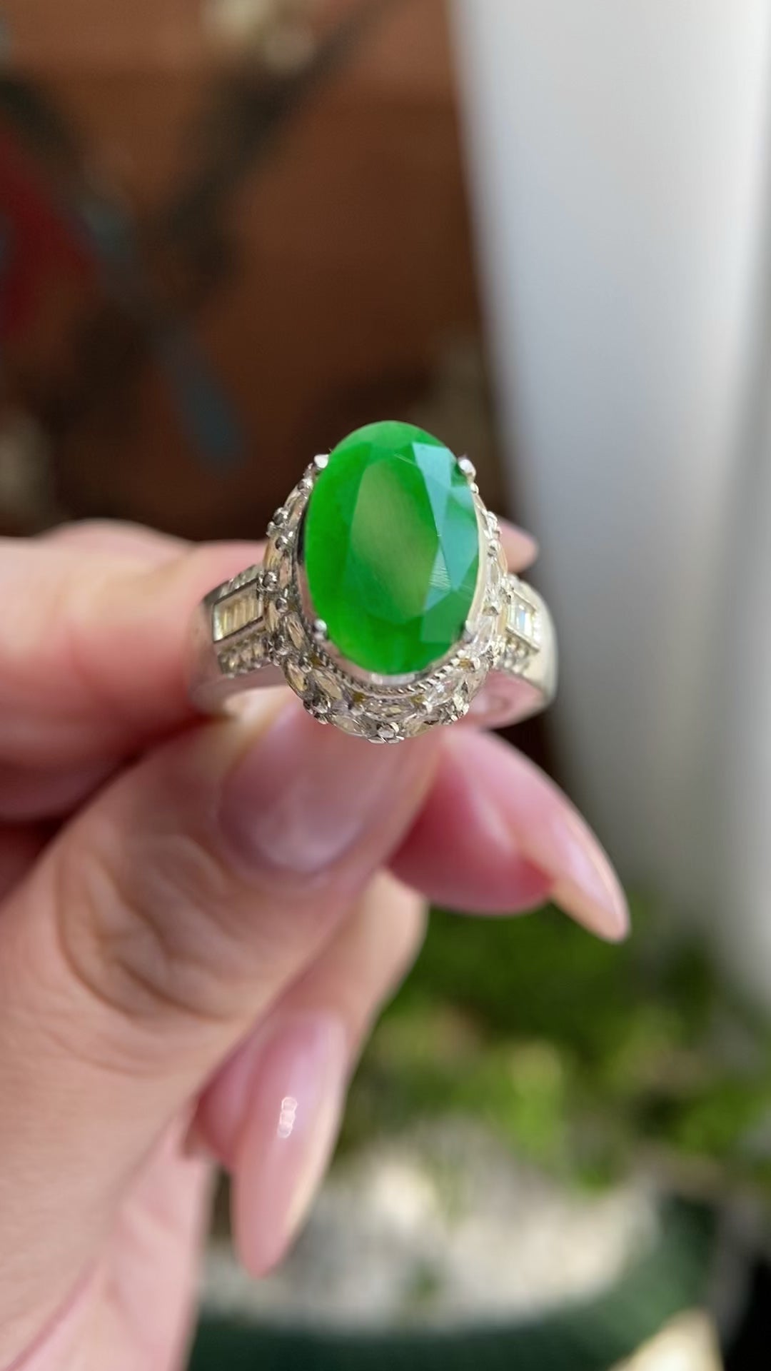冰种辣阳绿宝石切割戒面裸石(yc234470)