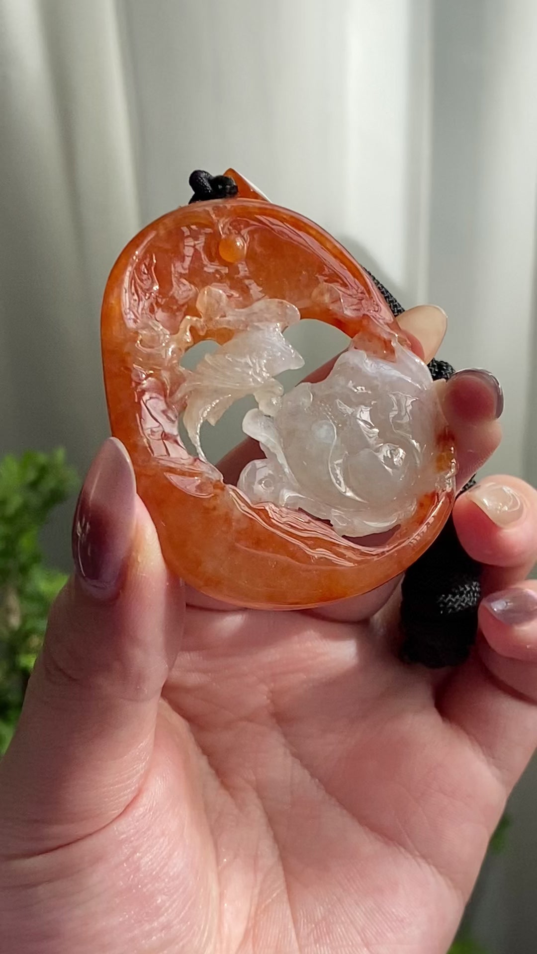 糯冰种黄翡花鸟牌吊坠(yc199628)
