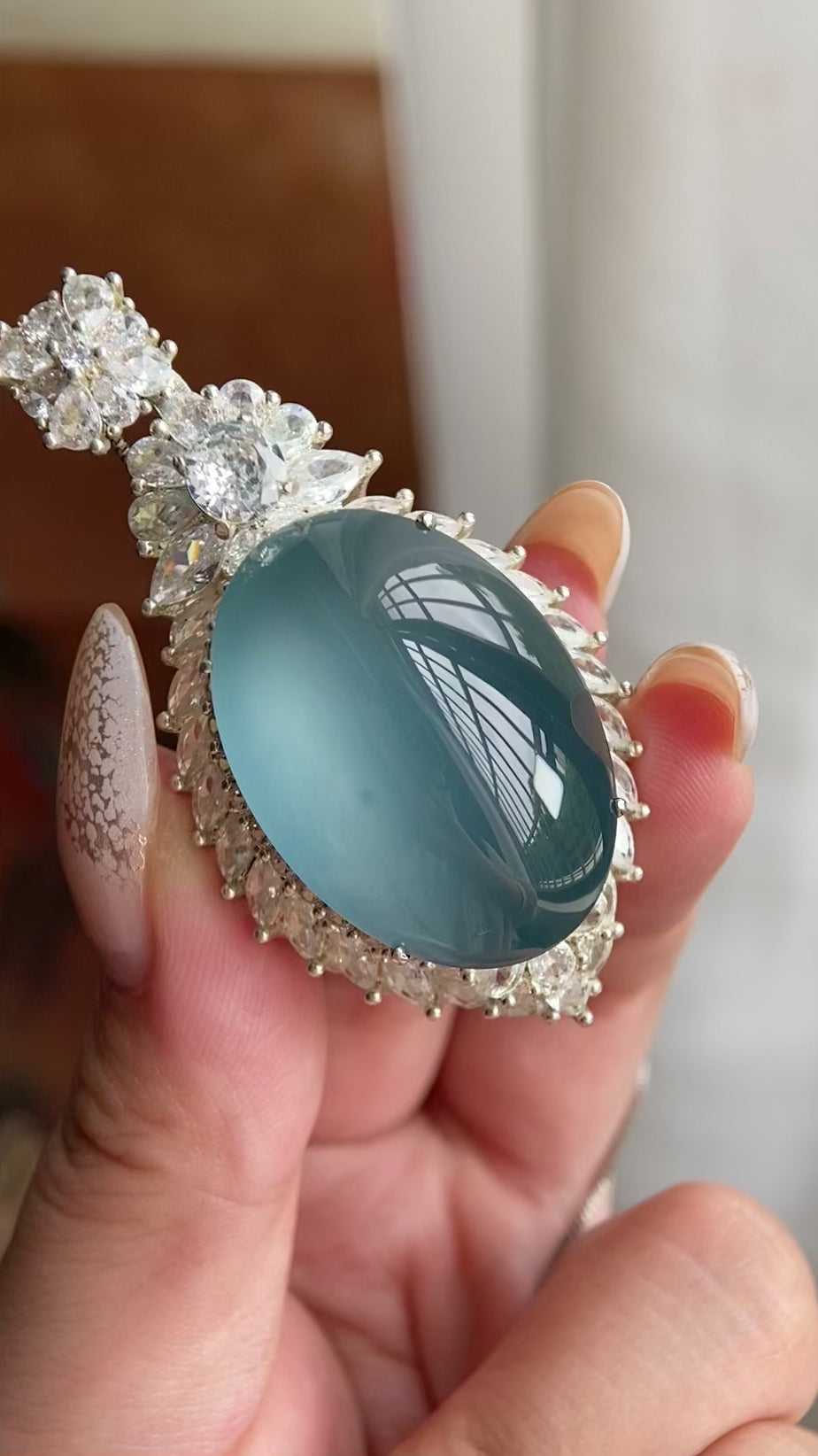高冰种蓝底椭圆大蛋面吊坠裸石(yc223721)