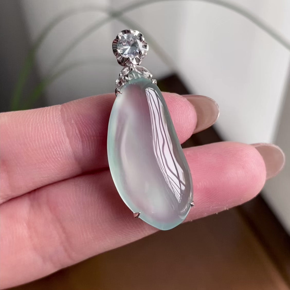 18k金钻镶冰玻种晴底福瓜吊坠(yc260820)
