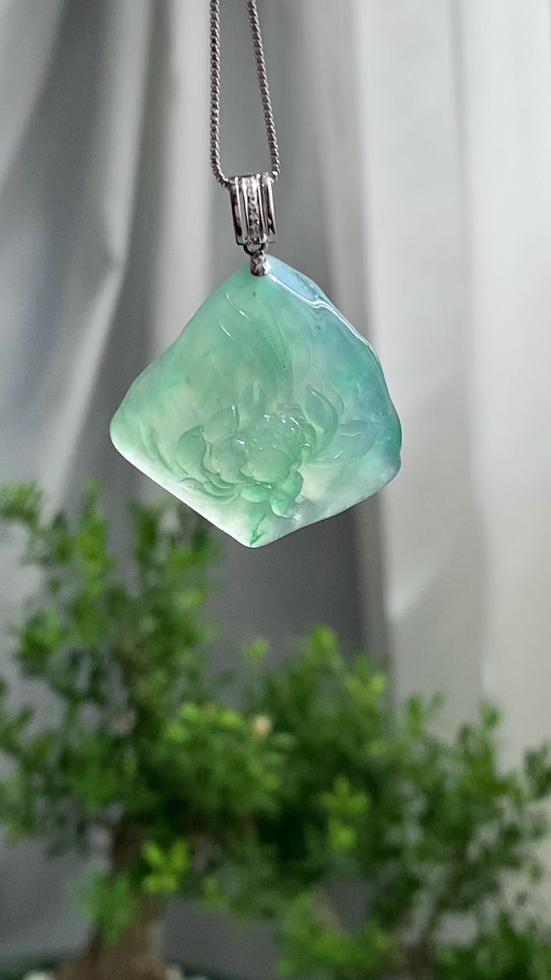 18k金钻镶冰种晴底莲花吊坠(yc206738)