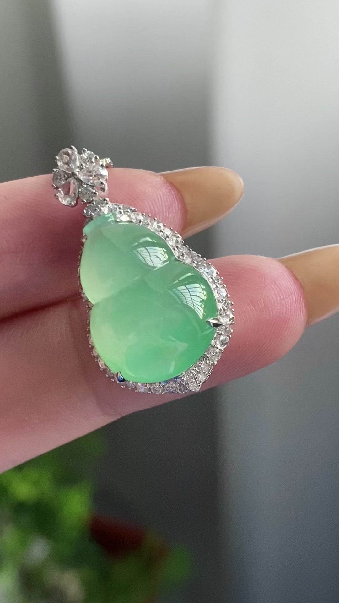 18k金钻镶冰种晴底葫芦吊坠(yc219254)