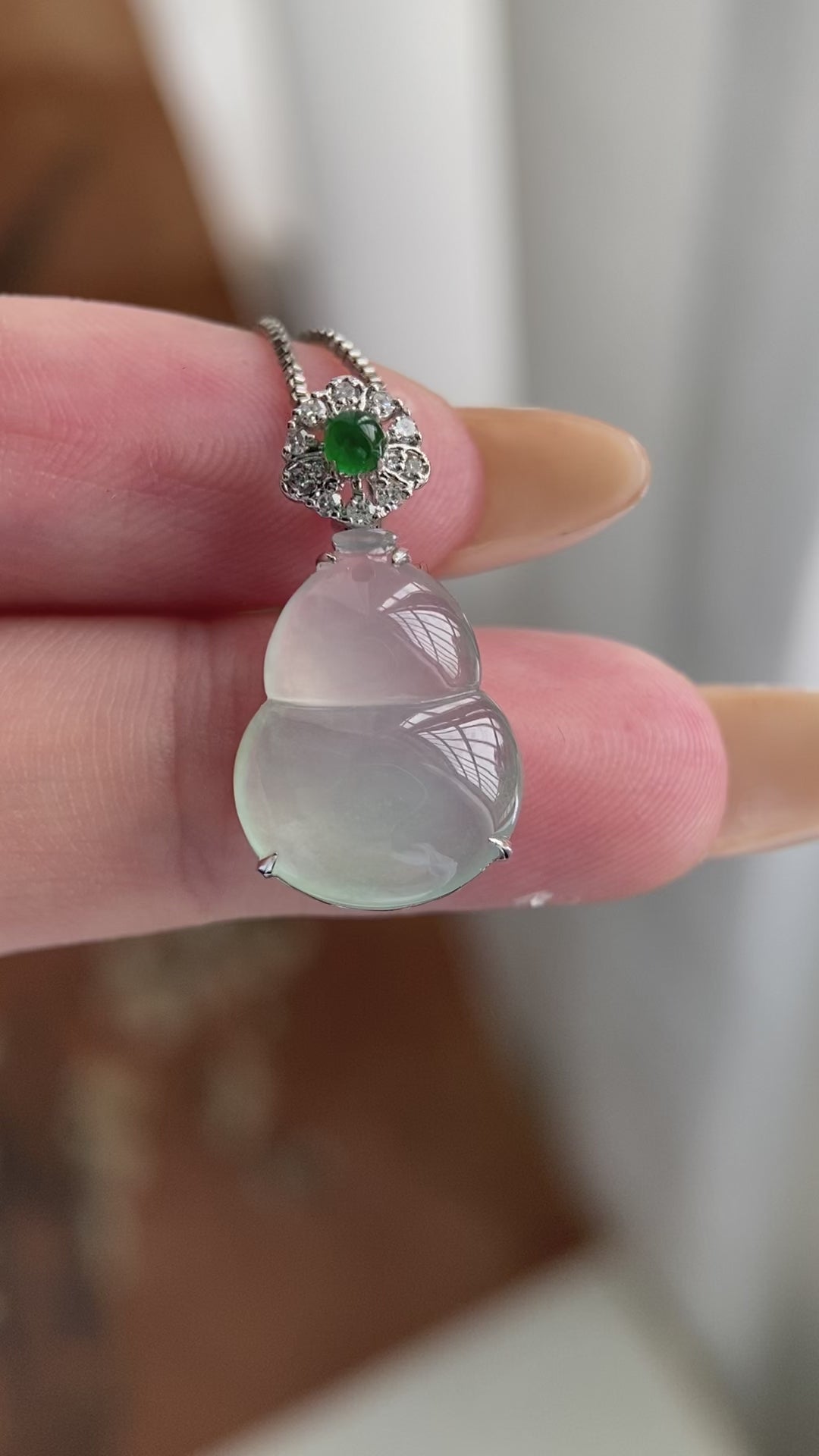 18k金钻镶冰种淡晴底葫芦吊坠(yc224543)