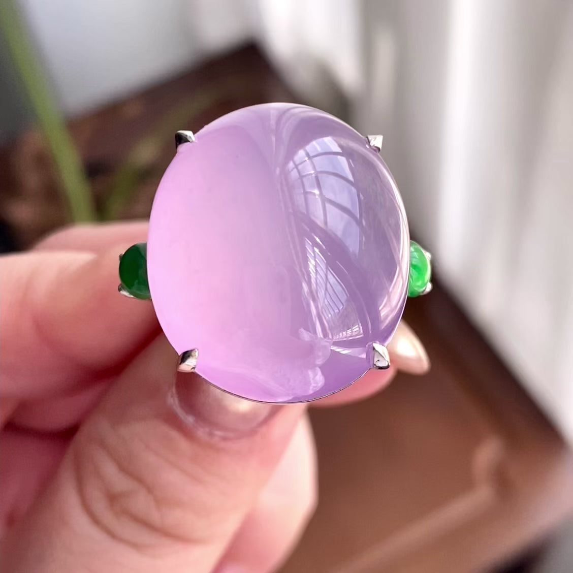18k金钻镶冰种粉春紫鸽子蛋戒指(yc258281)