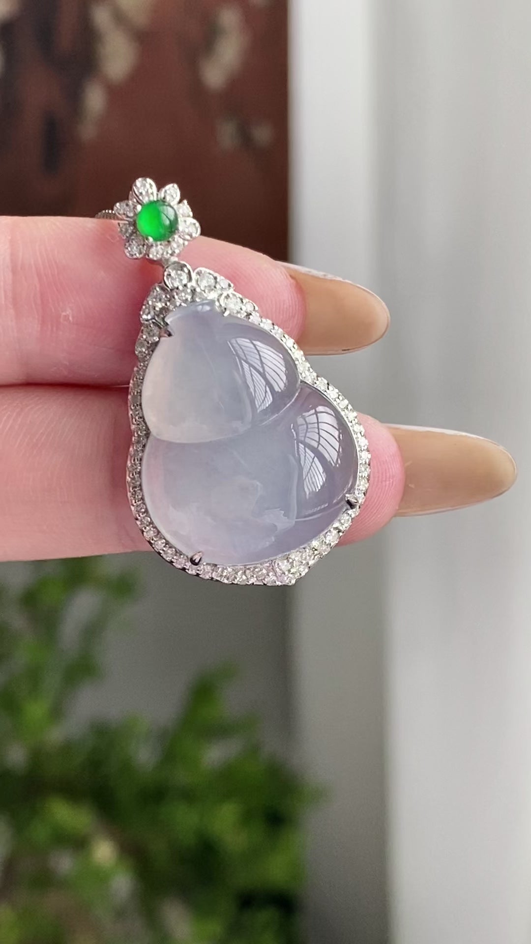 18k金钻镶冰种蓝底葫芦吊坠(yc223114)