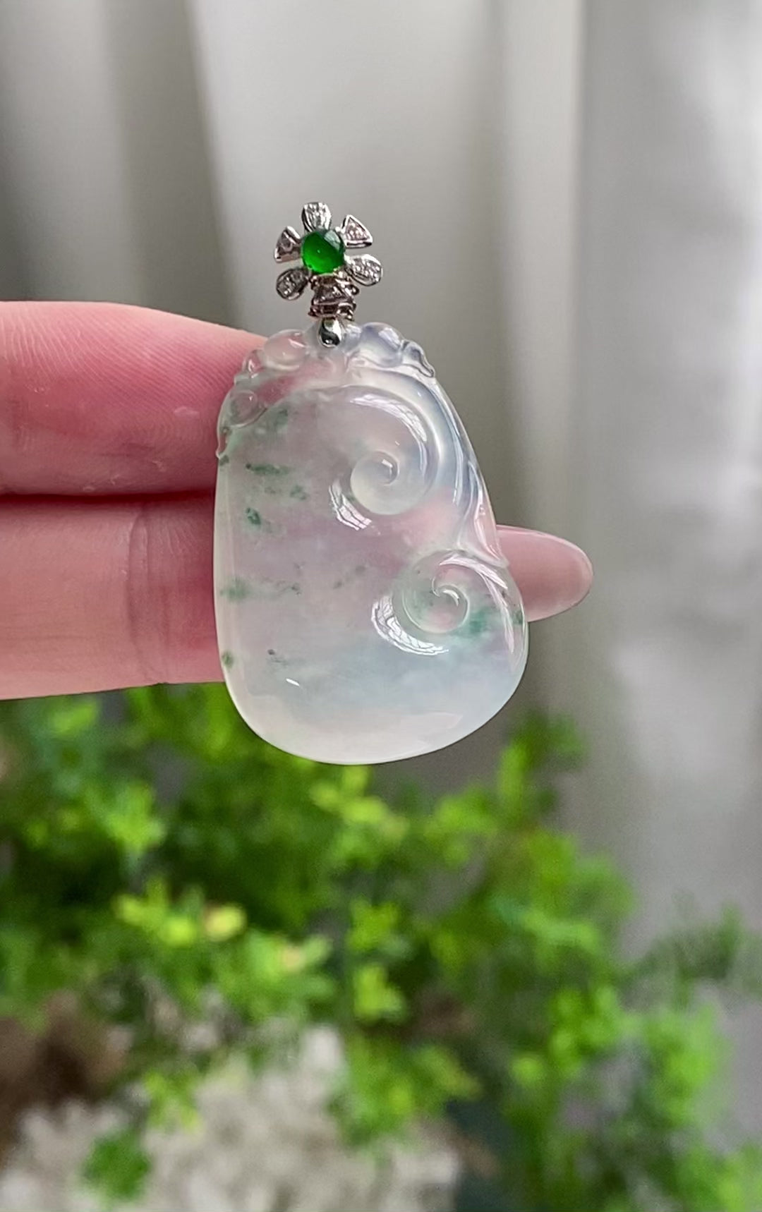 18k金钻镶冰种飘花如意吊坠(yc200952)