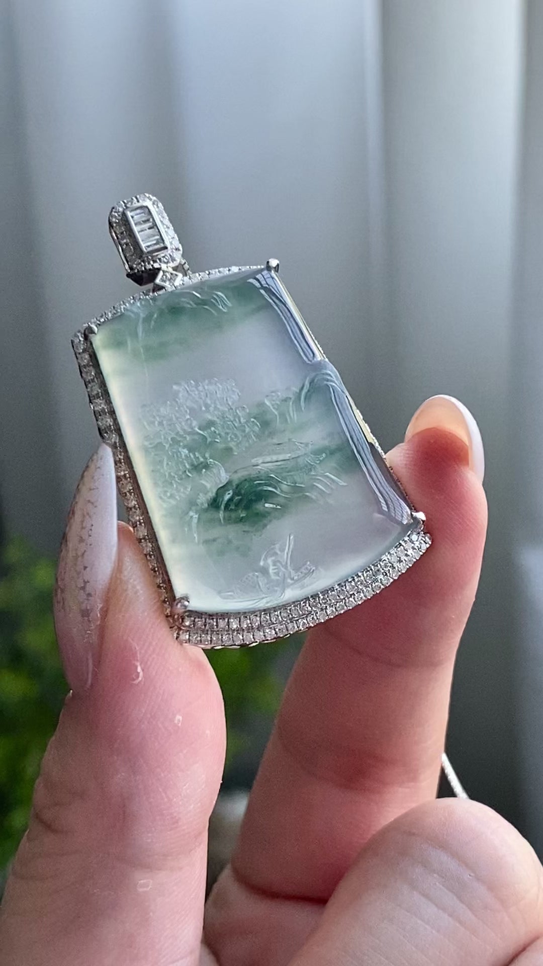 18k金钻镶冰种飘花山水牌吊坠(yc205075)