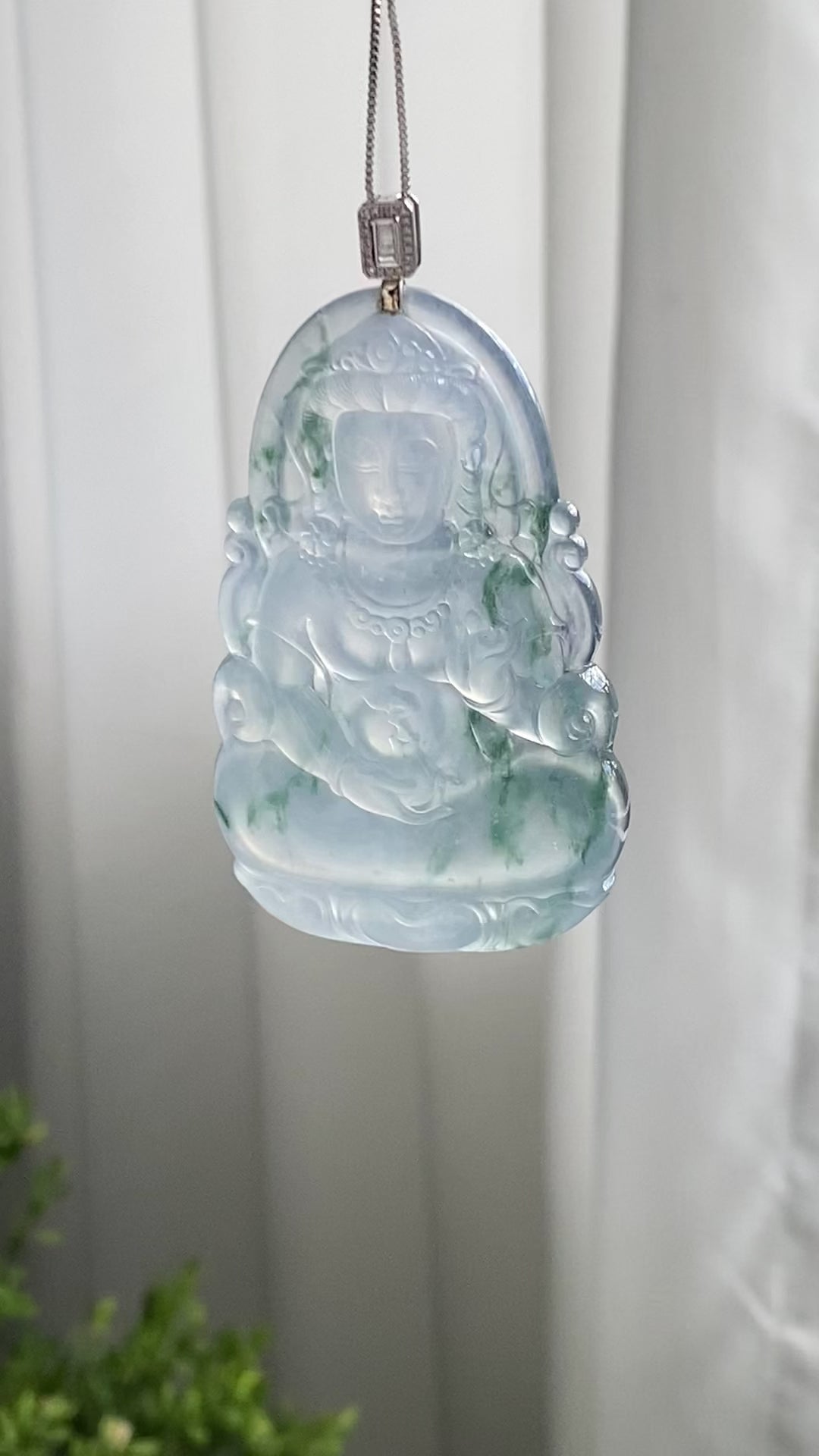 18k金钻镶冰种飘花观音吊坠(yc214689)