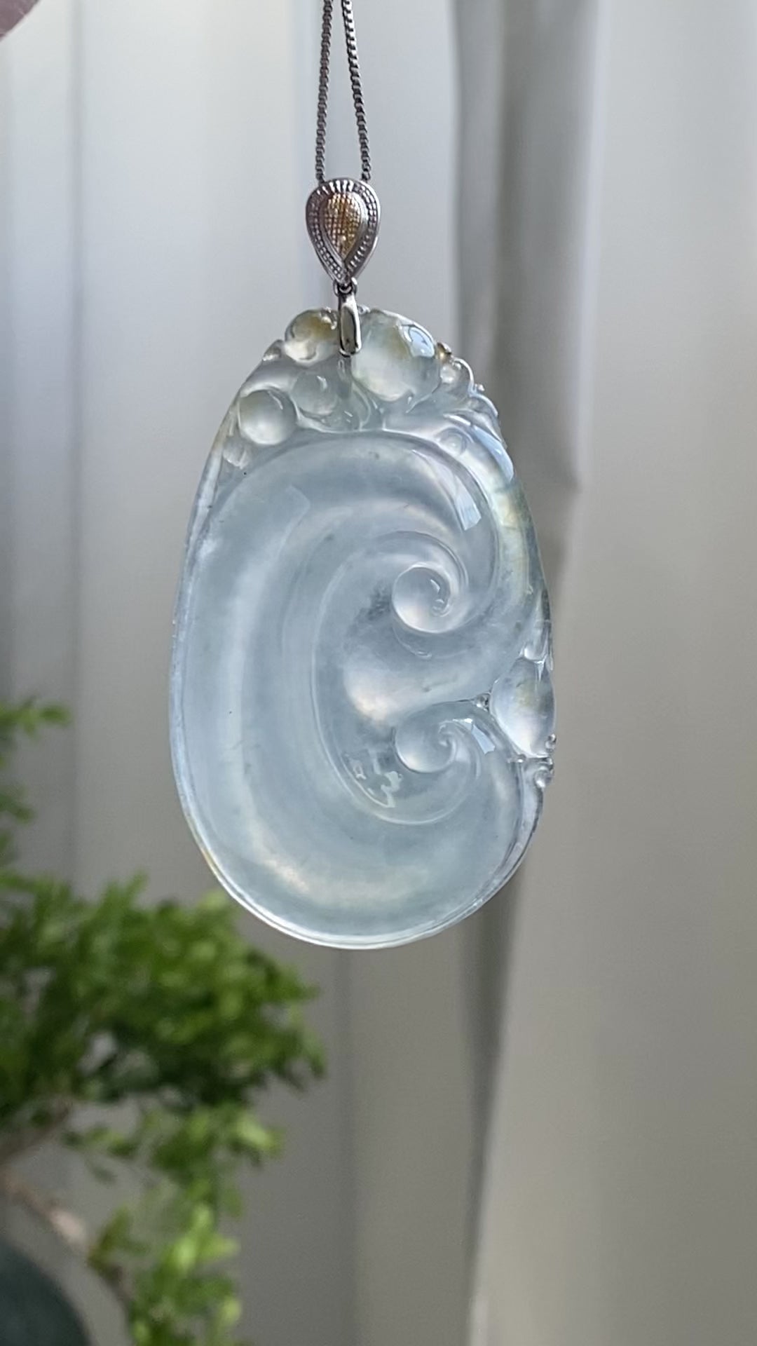 18k金钻镶冰种飘花飘黄翡如意吊坠(yc214318)