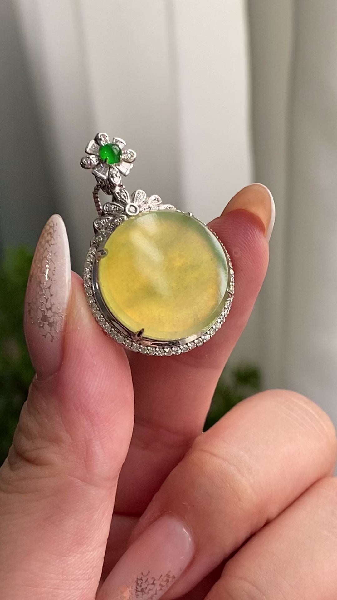 18k金钻镶冰种黄翡圆牌吊坠(yc206764)