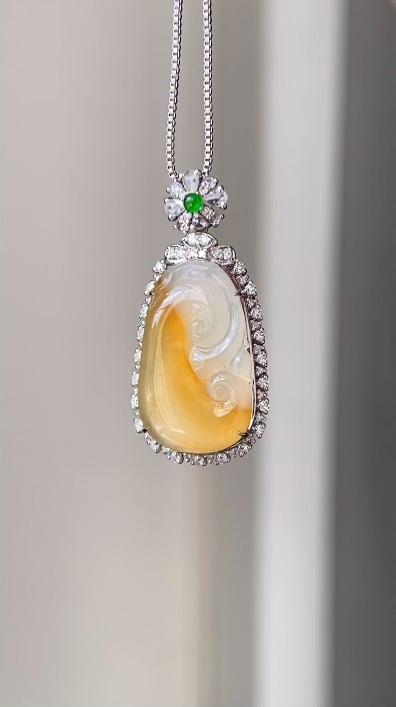 18k金钻镶冰种黄翡如意吊坠(yc216830)