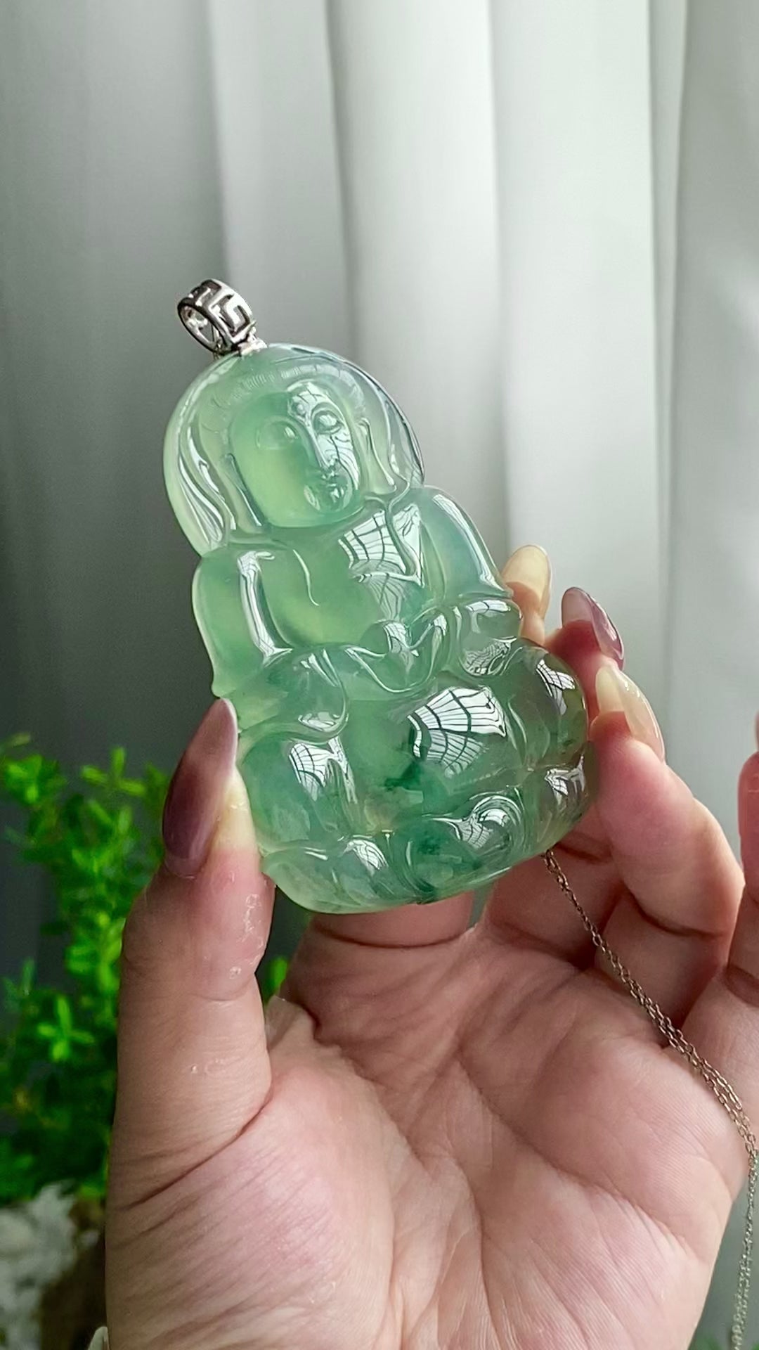 18k金镶冰种湖水绿飘花观音吊坠(yc201006)
