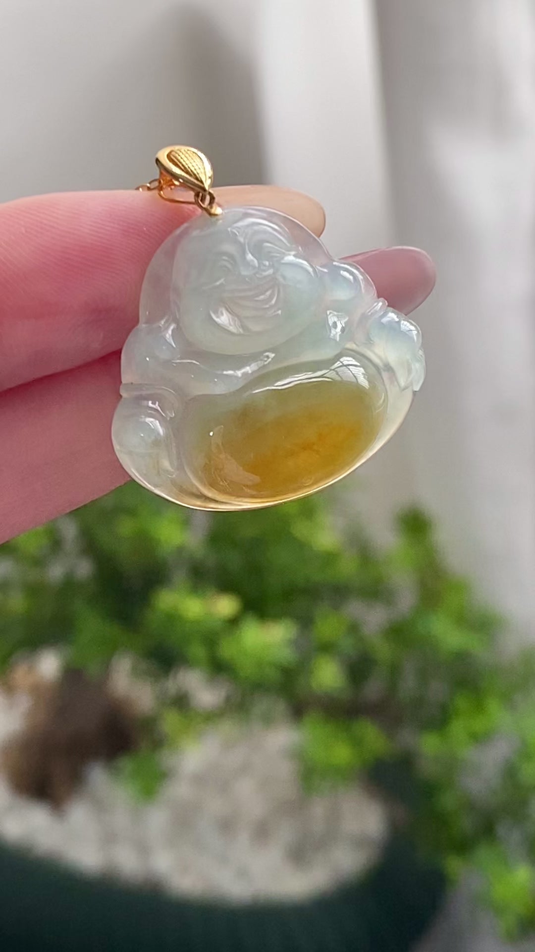 18k金镶冰种黄翡肚里藏金佛公吊坠(yc200394)